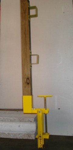 This provides a guardrail system when constructing masonry block wall. Attachment is accomplished by embeds and 1/2" coil rods installed in mud joint at bond beam elevation. The 2 x 4 brackets, embeds and tubes are supplied with clamp.